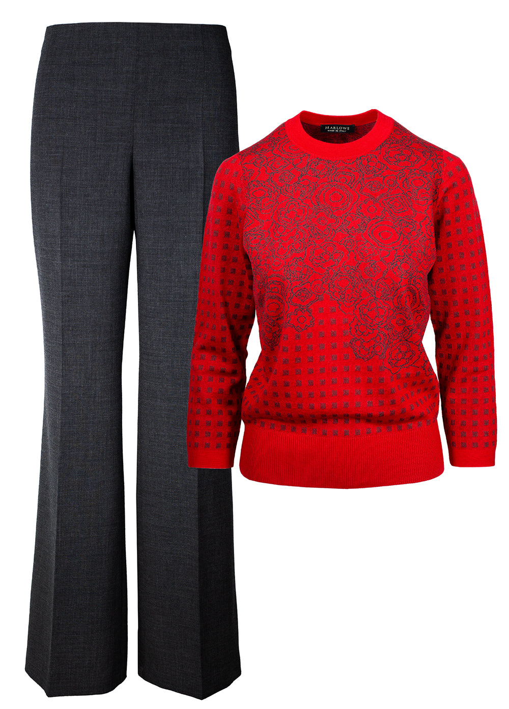 Cashmere ultra fine quadrato with floral jacquard crew neck sweater.