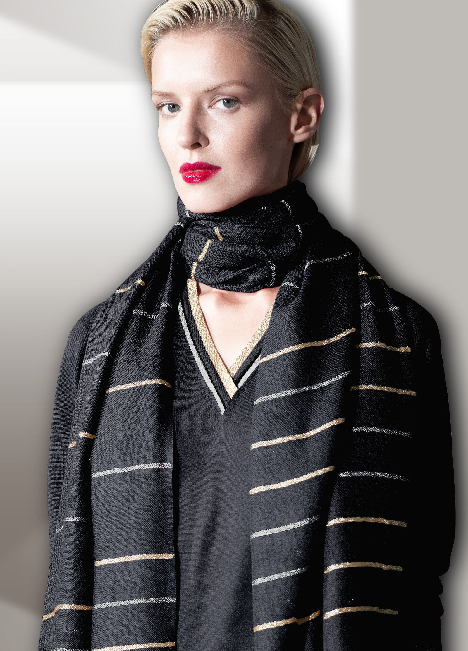Ultra fine weave crafted by hand loom technique uses the same cashmere yarn as the knitwear.