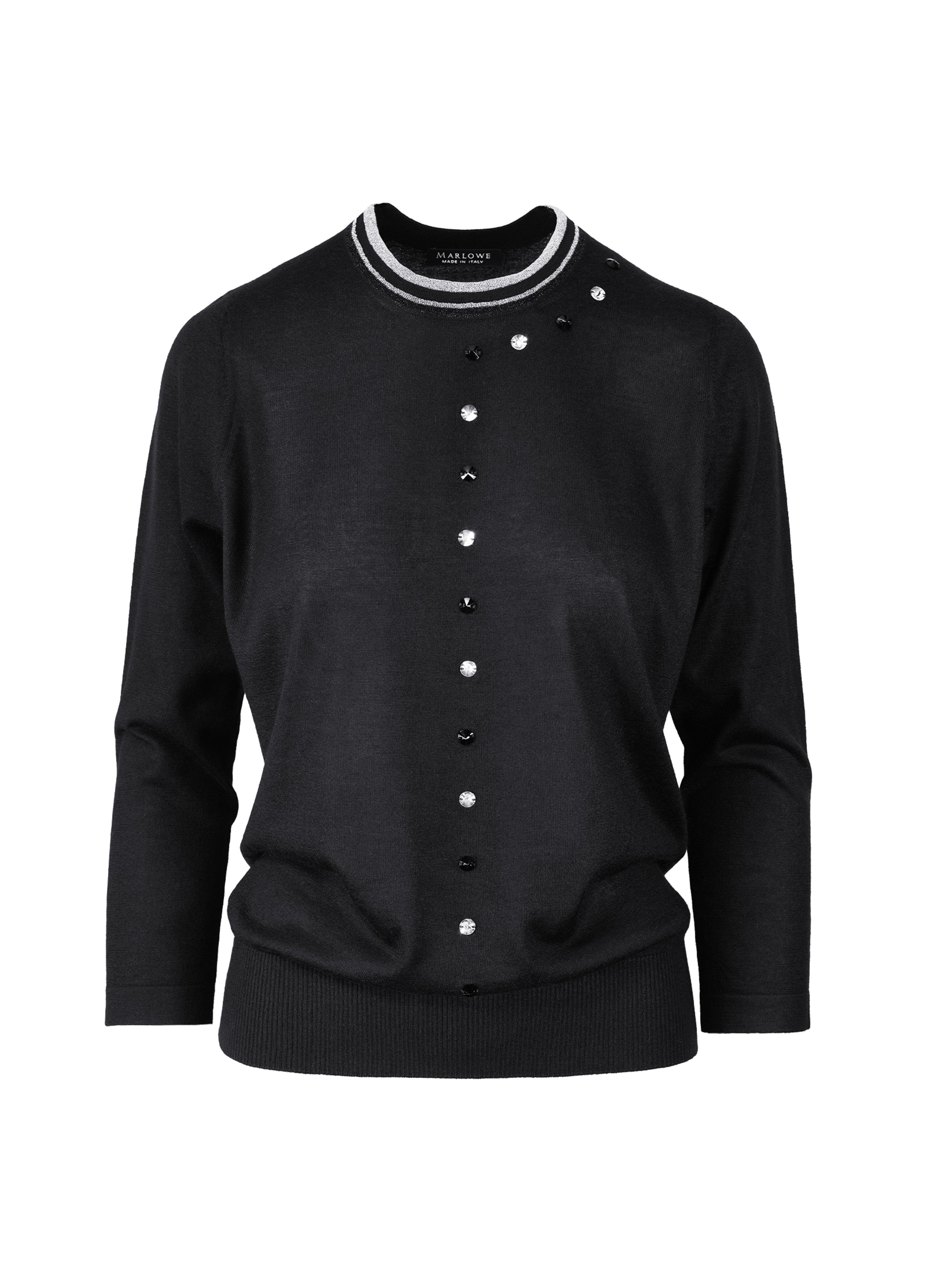 Cashmere second-skin with lame and bead design crew neck sweater.
