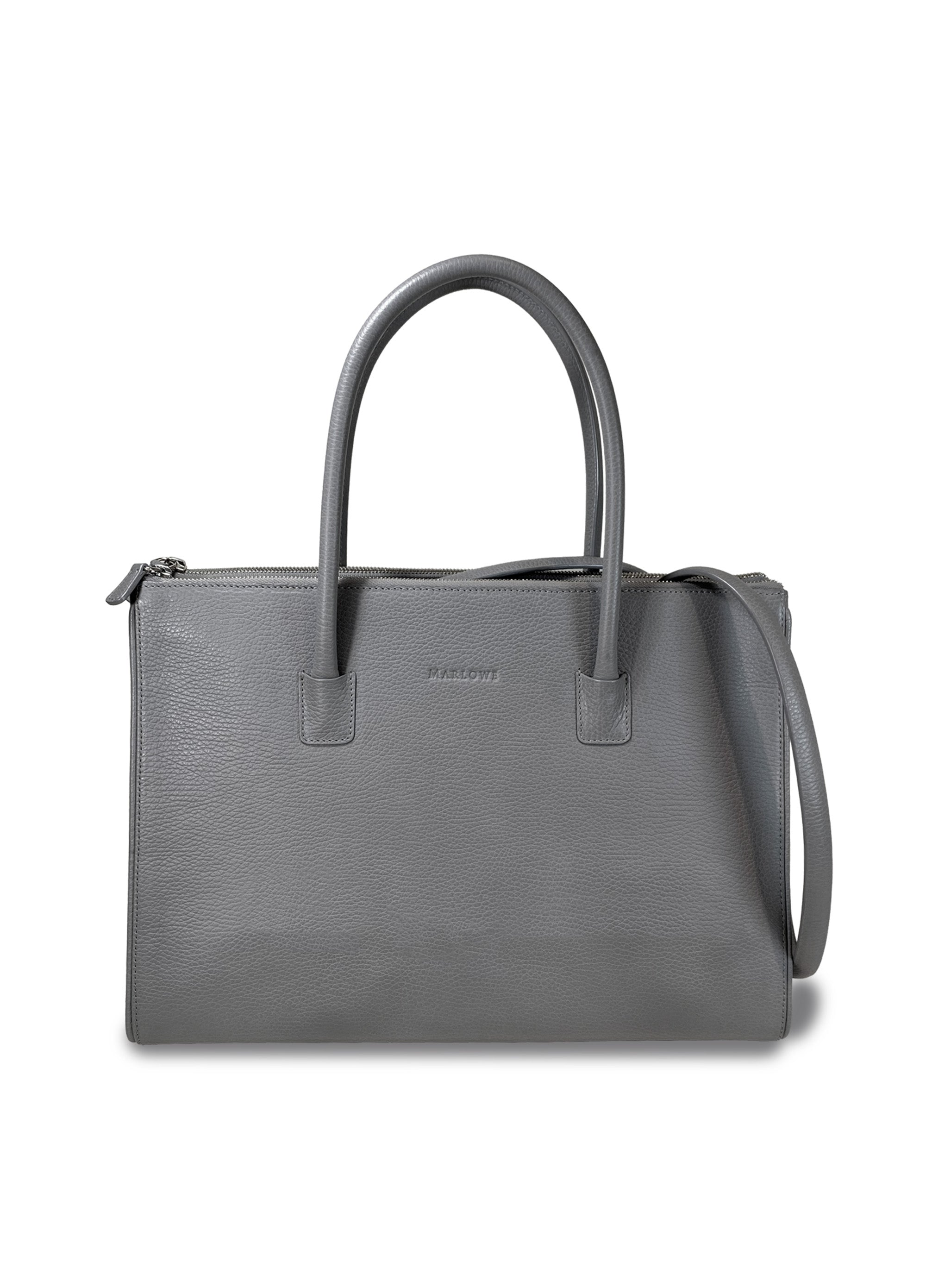 Double zipper compartments leather bag with detachable shoulder strap crafted in pebbled  calfskin leather.