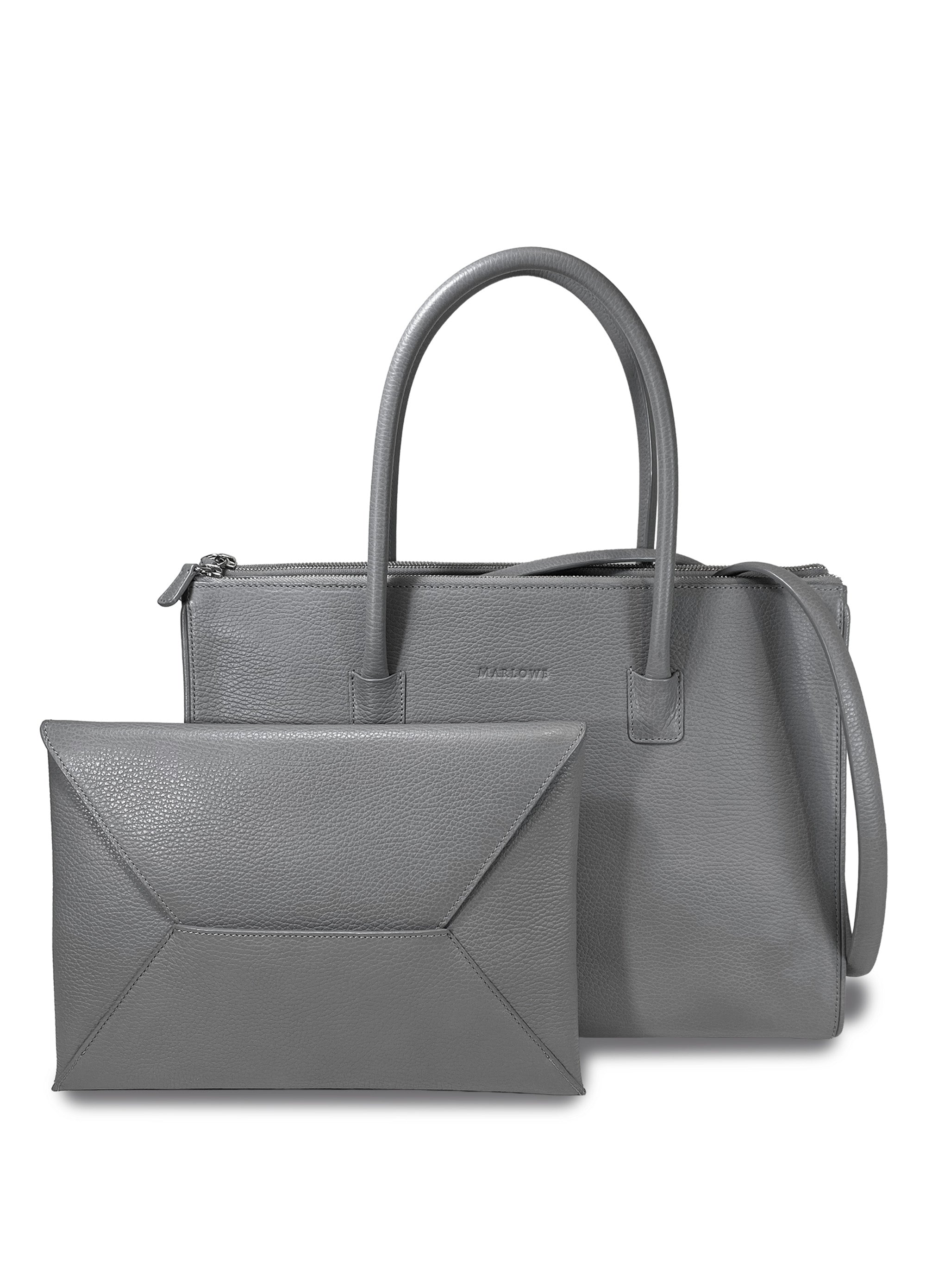 The double zipper compartments with open center accommodates the coordinating envelope clutch for day to dinner transition, and all your daily needs.