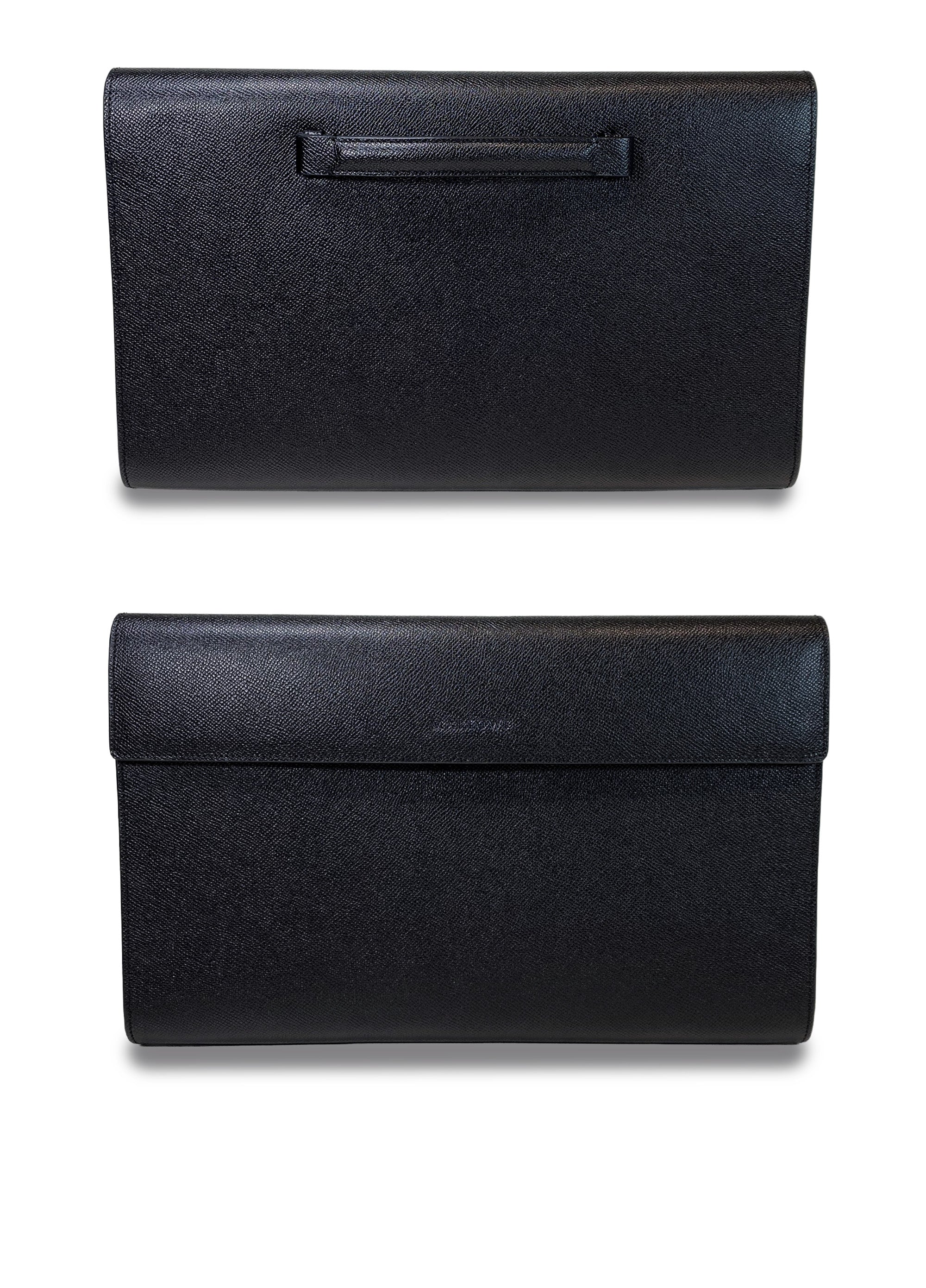 Single back handle leather clutch bag crafted in fine texture calfskin leather.